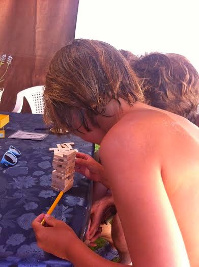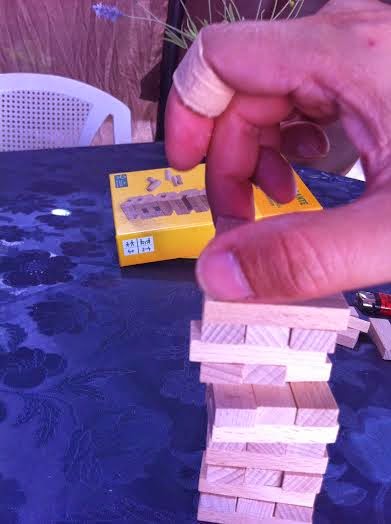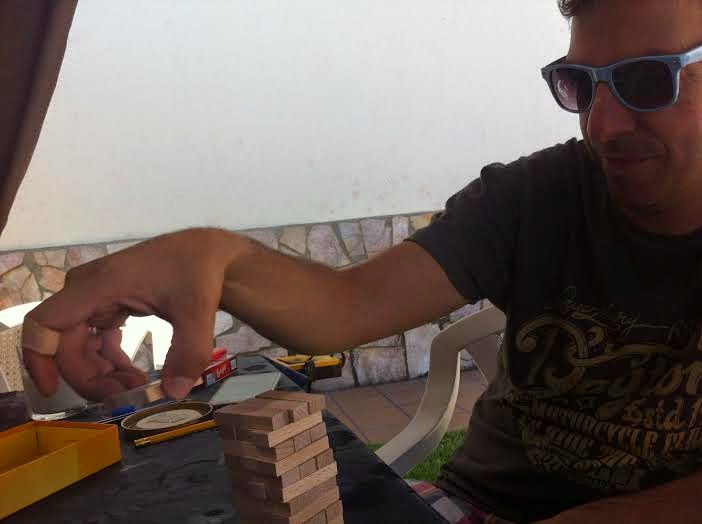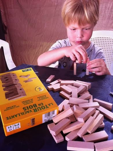 El juego en sí es muy simplón pero entretenido, son pequeñas piezas de madera (me encantan los juguetes y juegos de este material) que has de apilar para luego ir quitando una a una, éste en concreto que lo compramos en el ALDI y salió tirado de precio. Los peques se lo pasaron fenomenal (¡el pichu también!) y son unos fenómenos a este juego.